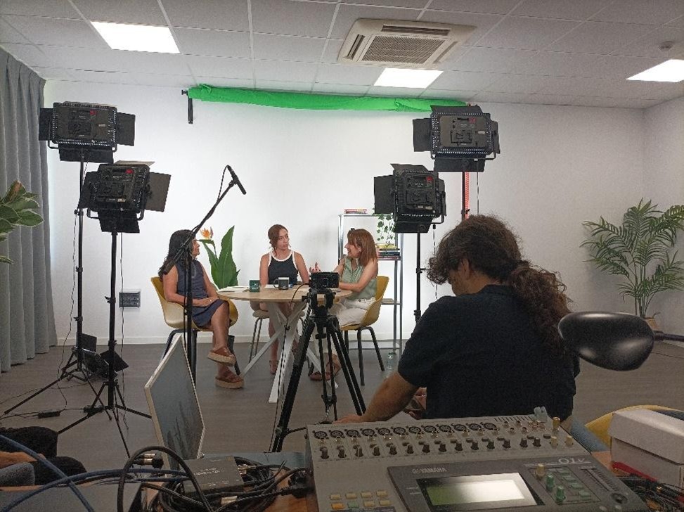 Behind the scenes of the recording of Informal Talks, the INSEAI Network’s new podcast series. From left to right: Fernanda Wanderley (Universidad Católica Boliviana), Laura Vidal (Universidad Autónoma de Madrid), and Ana de la Puebla (Universidad Autónoma de Madrid).